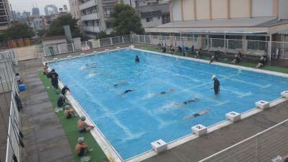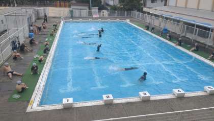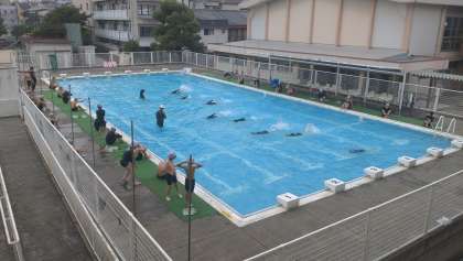 6限目は、5年2組のプールでした。クロールの練習に取り組んでいます。バディシステム(二人のペア)で、お互いにアドバイスをしています。