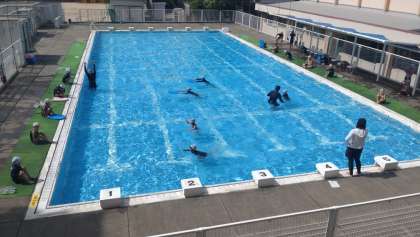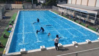 本日、1限目は2年2組のプールがありました。ビート版を使って、けのびや伏し浮きの練習をしています。