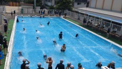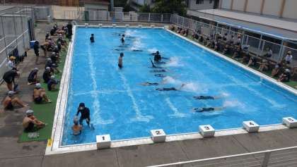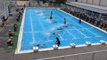 4限目に6年生のプールがありました。続けて長く泳いだり、泳ぐ距離や浮いている時間を伸ばしたりすることを目標に水泳学習に取り組んでいます。
