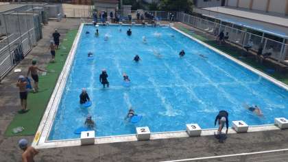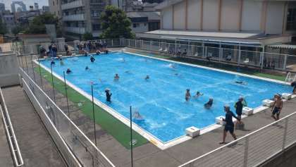 2限目1年生、3限目3年生の後に4限目に4年1組のプールがありました。プールの25メートルを使って、バタ足や伏し浮き、クロールの練習に取り組みました。