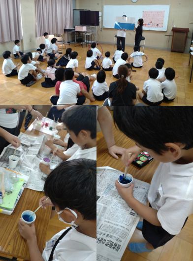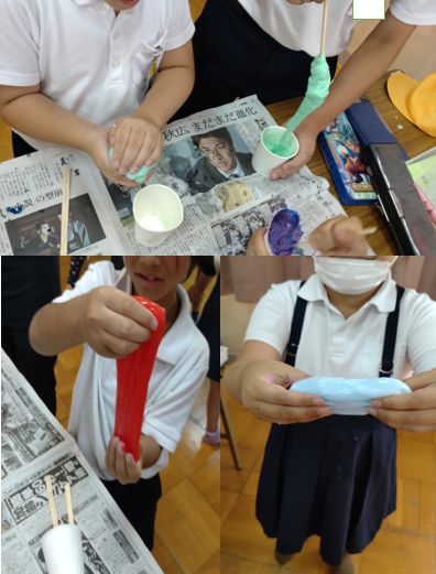 3限目に、なかよしタイムがありました。本の読み聞かせとスライムづくりに取り組みました。化学的な変化に驚きながら、子どもたちはスライムづくりに楽しく活動できました。