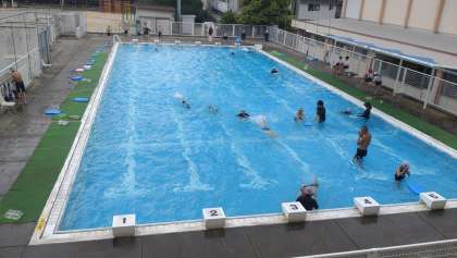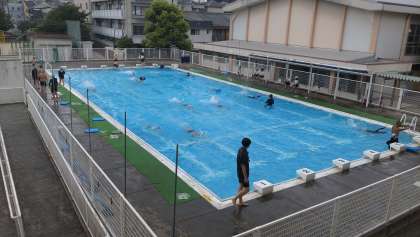 7月19日(水)、本日は、朝の英語モジュール、生活指導支援員が来校します。1限目に、5年2組のプール水泳がありました。写真は、自分の課題に向けて、クロールなどの練習をしている様子です。