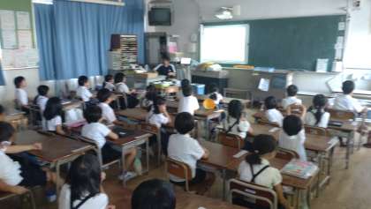 2学期の朝の英語モジュールが今日からはじまりました。元気な子どもたちの英語の歌声が響いています。