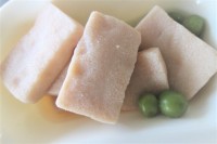 今日の給食は、焼きハンバーグ、豆乳スープ、みかん(冷)、黒糖パン、牛乳です。
