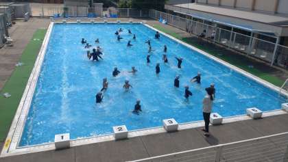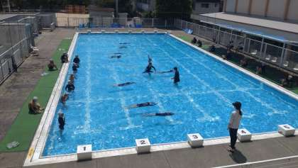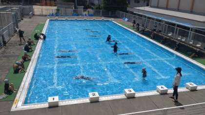 4限目は、4年2組のプールがありました。水慣れの後、けのびや伏し浮きなどの基本の泳ぎ方を練習しました。