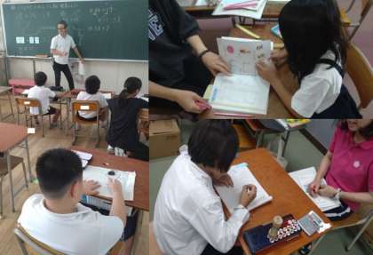 なかよし学級で、子どもたちは、算数や国語の学習課題に向けて取り組んでいます。繰り上がりのあるたし算や長さ、数の大小、文章の助詞の学習など、子どもたちがそれぞれの学習課題について熱心に学んでいます。