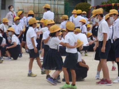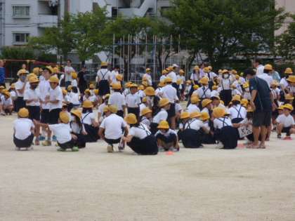 本日の児童集会は「進化じゃんけん」でした。たてわり班で運動場に並んで「たまご」⇒「ひよこ」⇒「にわとり」⇒「にんげん」とじゃんけんで勝つごとに進んでいくゲームをしました。