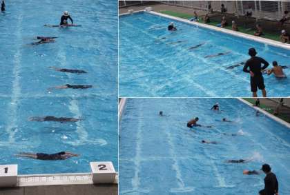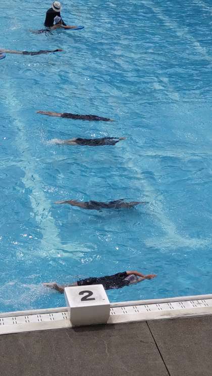 3限目は、2年1組のプールでした。けのびや伏し浮きなど水の中を浮く運動を中心に練習しています。子どもたちは、力をぬいて浮く動きができてきました。