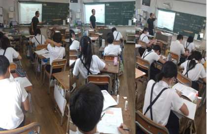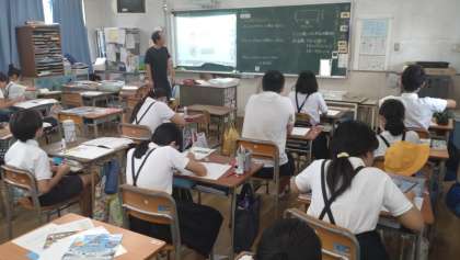 6年生が算数で「円の面積」の学習をしています。。この授業では、円の面積の求め方を考え、求積公式を導く学習に取り組んでいます。