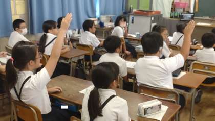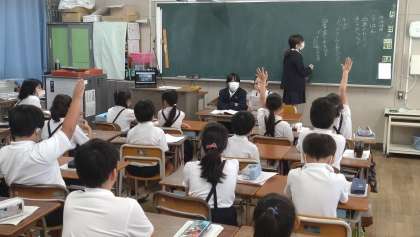 4年生の国語で、単元「学校についてしょうかいすることを考えよう」を学習しています。話し合いの目的を理解して、司会者・提案者・参加者などの役割を果たしながら話し合い、結論をまとめる学習に取り組んでいます。子どもたちは積極的に発表しています。