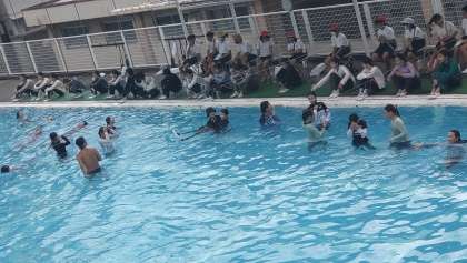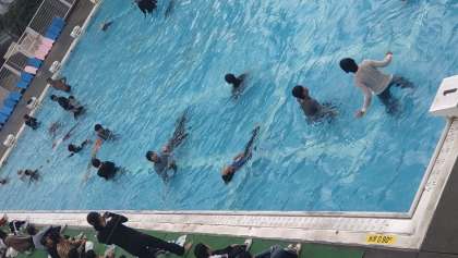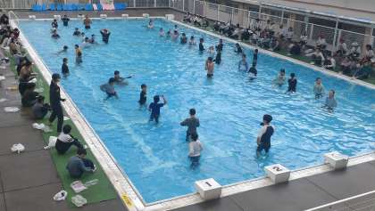 6年生が6限目に着衣水泳に取り組みました。着衣水泳は、水着ではなく普段の服を着たまま入水する水泳の学習です。 「非常時」を体験することで、いざというときに落ち着いて対応できるようにするのが目的です。しかし、これは、海や川に服を着て落ちた時の最終手段で、このようなことが起こらないように危険な場所に近寄らないことが一番重要です。
