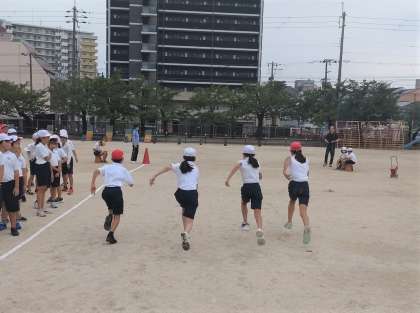 9月11日(月)4年生 体育〜走・跳の運動(かけっこ)