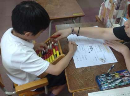 なかよし学級で、国語や算数の学習をしています。物語文や国語辞典の使い方、たし算やひき算の学習など、学年や個々の課題解決に向けて熱心に取り組んでいます。