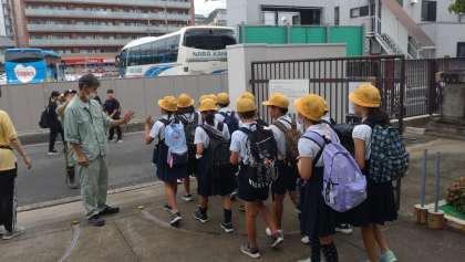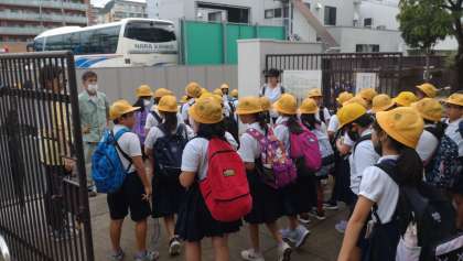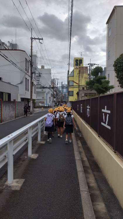 9月21日(木)、写真は、4年生が、4年生 ニッセイ名作シリーズ鑑賞のために出発する様子です。本日は、学校公開が、2限目(9:45-10:30)、学校説明会が、3限目(10:45-)より多目的室(2F)で行われます。