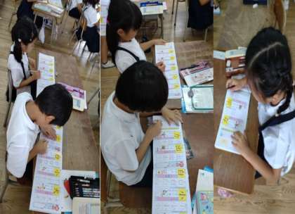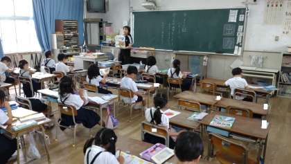 1年生が、漢字の学習に取り組んでいます。「力」や「出」などの新出漢字を熱心に練習しています。