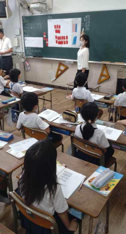 教育委員会から講師の先生に来ていただき、2年生の研究授業がありました。ひき算のひっ算の学習でした。子どもたちは、とても集中して授業に取り組んでいました。