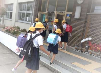 9月26日(火)、本日、朝の英語モジュール、学校司書が来校します。写真は、登校時間を守って、元気に登校している子どもたちの様子です。
