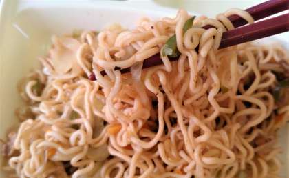 今日の給食は、焼きそば、きゅうりのしょうがづけ、いもけんびフィッシュ、黒糖パン1/2、牛乳です。