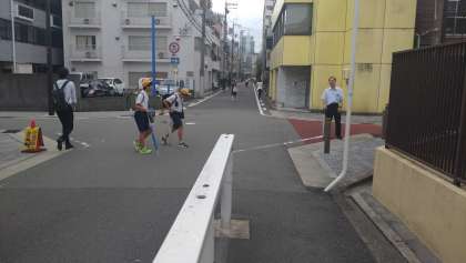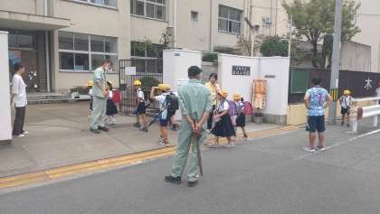 9月28日(木)、本日は、児童集会があり、生活指導支援員が来校します。写真は、地域の見守り隊の方々の見守りの中、今朝も登校時間内に元気に登校する子どもたちの様子です。