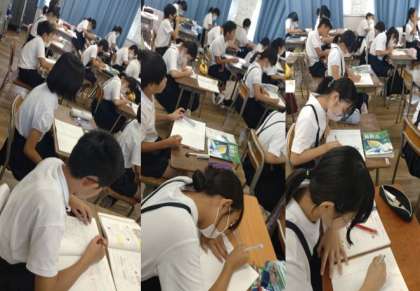 6年生が算数で「比とその利用」の学習に取り組んでいます。この時間は、等しい比の意味や性質について学んでいます。