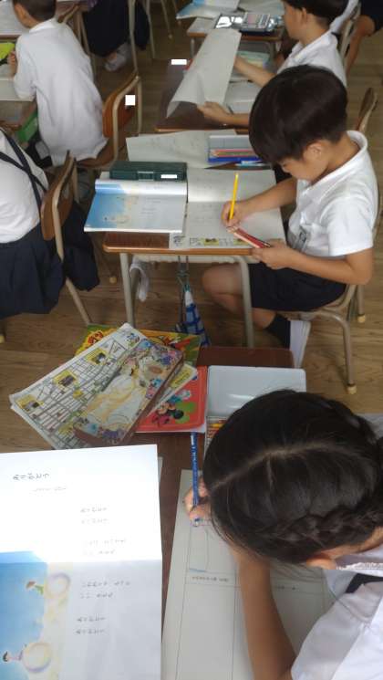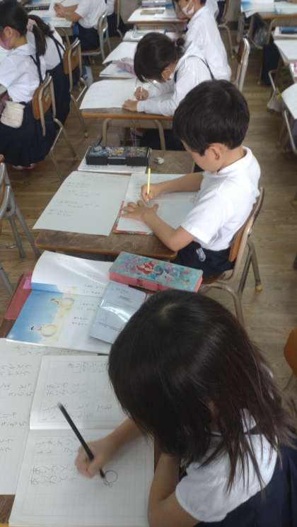 1年生が国語で詩の視写に取り組みました。視写をすることで、書き方のきまりや「文節のまとまり」や「言葉のまとまり」、「意味のまとまり」をとらえられるようになります。