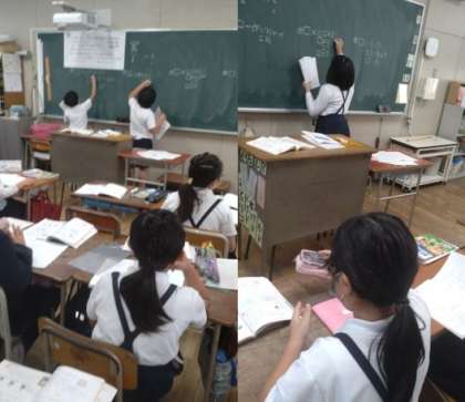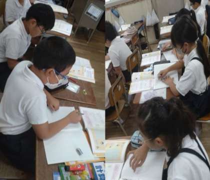 4年生が、単元「 式と計算の順じょ」の学習のまとめをしています。学習内容を振り返り、答えを確かめています。写真は、昨日の4年生の子どもたちの学習の様子です。