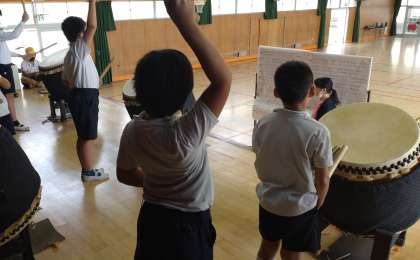 毎週、金曜日の3限目は、「なかよしタイム」の時間です。なかよし発表会に向けて、手話や太鼓、ハンドベルの練習に取り組んでいます。