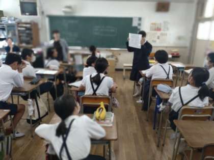 6年生が「水溶液の性質」の学習の振り返りをしました。クイズ形式で答えを確かめるなど工夫しながら学習のまとめをしています。