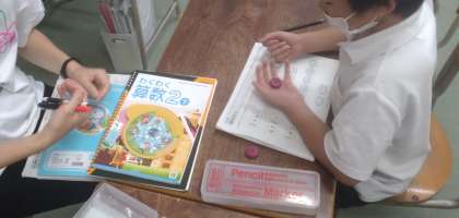なかよし学級で国語や算数の学習に取り組みました。物語文や九九などを具体物を活用して学んでいます。子どもたちは、とても集中して取り組んでいます。