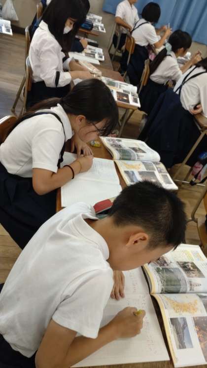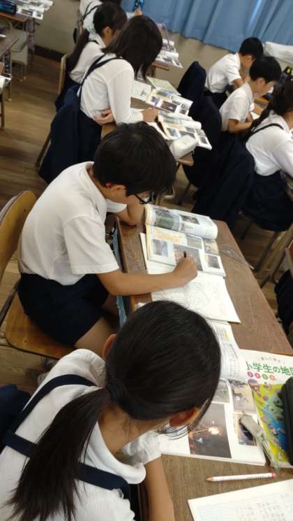 4年生の社会で、大阪府の学習に取り組んでいます。「大阪府に昔から伝わるもの」について調べて考える学習です。「人形浄瑠璃」「天神祭り」「岸和田のだんじり」などについて学んでいます。写真は、昨日の授業の様子です。