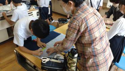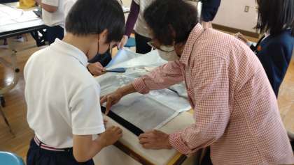 今日の2・3限目に5年生と地域の方々との世代間交流がありました。子どもたちの家庭科のエプロンづくりの学習に地域の方々に参加していただき交流しました。