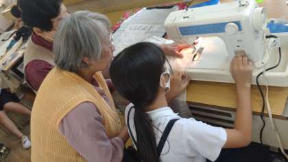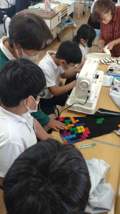 子どもたちは、「しつけ」や「ミシン」などを教えてもらいながら活動しました。