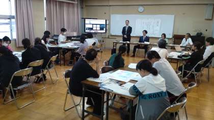 数学的な考え方は、思考力として発表やノートなどで表現されます。今回の研究授業でもペア学習や全体発表など、子どもたちは活躍していました。また、授業後の研究討議会では、講師先生の指導のもと、活発な論議が行なわれました。