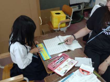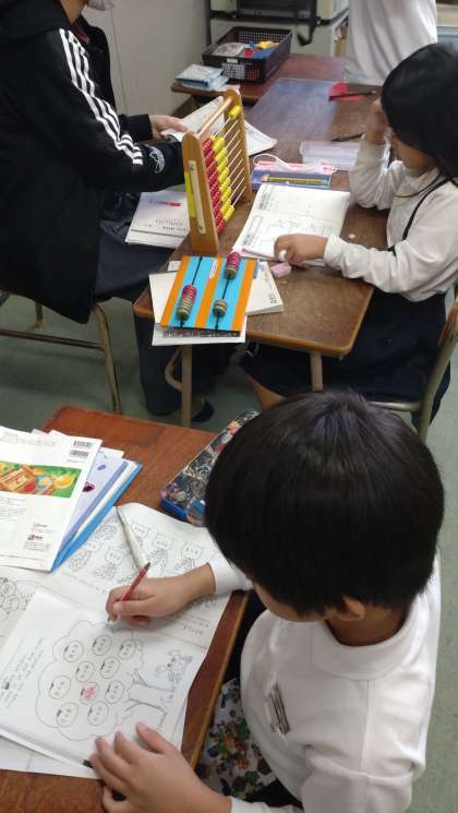 なかよし学級で、それぞれの課題について取り組んでいます。「円」や「かけ算」「たし算・ひき算」などの学習をしています。