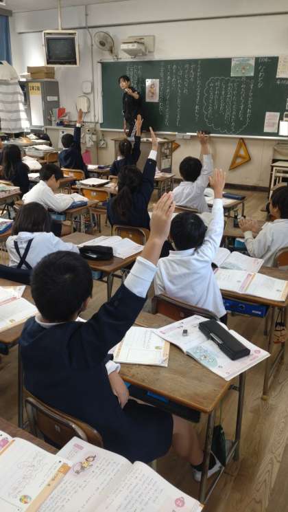教材「なわとび」について学習しました。この教材は「希望と勇気,努力と強い意志」が学習内容です。うまくいかなくても何度も練習して跳べるようになった主人公の達成感を通して、困難から逃げ出さず,根気強く努力して、目標に向かって最後までやり抜こうとする心情を育てる学習です。