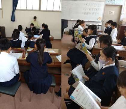 廊下を歩いているときれいな歌声が聴こえてきました。音楽室に行くと、4年生が「もみじ」の2部合唱をしていました。子どもたちは、友だちの歌声を聴きながら、自分の声を合わせて丁寧に歌っていました。