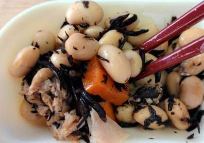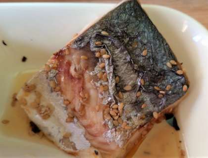 今日の給食は、さごしのごまじょうゆかけ、うすくず汁、大豆の煮もの、ごはん、牛乳です。