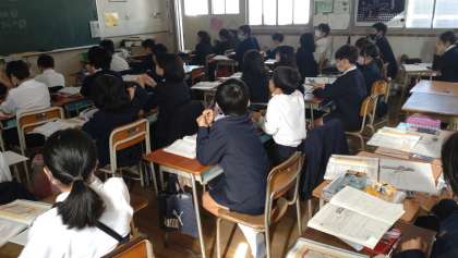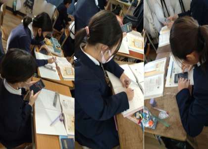 5年生の算数で「平均とその利用」の学びのまとめをしています。これまでの学習を振り返って課題に取り組んでいます。