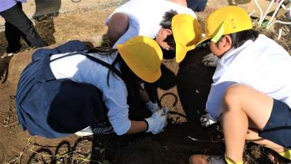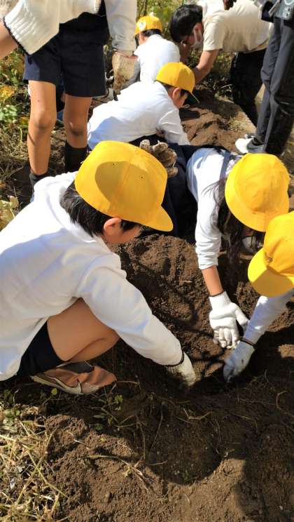 なかよし学級で、おいも掘りをしました。おいもを見つけて子どもたちは大喜びです。明後日の金曜日に「おいもパーティー」をします。楽しみですね。
