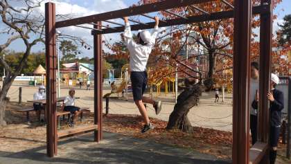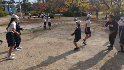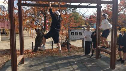 中高学年が、アスレチック・なわとび・遊具で遊んでいます。2