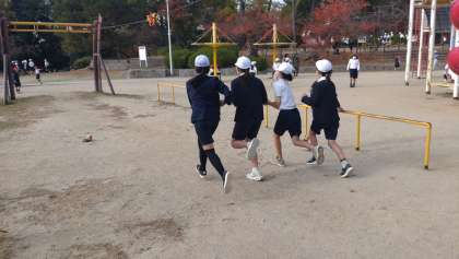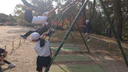 中高学年が、アスレチック・なわとび・遊具で遊んでいます。3