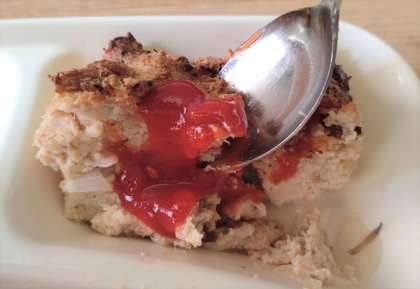 とうふローフは、ツナ、とうふ、細かくカットした大豆、たまねぎを混ぜあわせ、砂糖、塩、こいくちしょうゆで味つけし、焼き物機で焼いています。