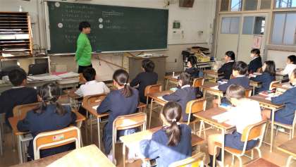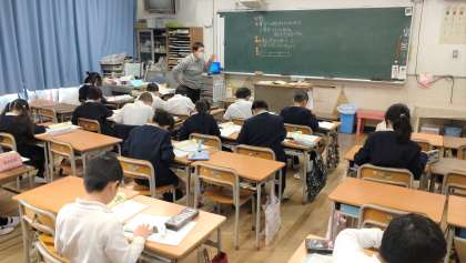 3年生が学年を3分割して、算数の学習に取り組んでいます。1mを基準として、量の大きさを単位分数で表すことを学んでいます。