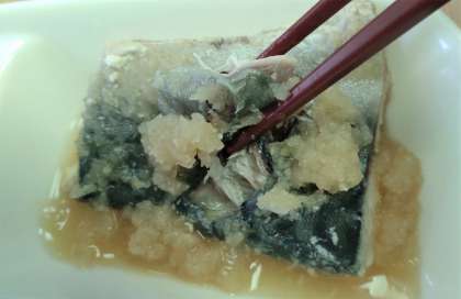 今日の給食では、さばのみぞれかけが登場します。
