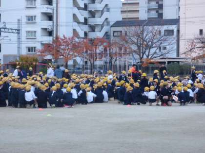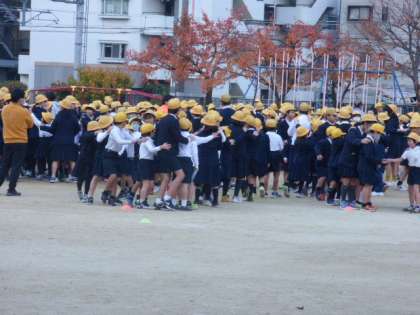 本日木曜日は集会委員会が行う、たてわり班ごとに楽しむ児童集会です。今日は「Newじゃんけん列車」をしました。運動場で1〜6年生の全校児童が楽しみました。