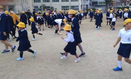 集合から解散まで、6年生が1年生をやさしくリードしています。