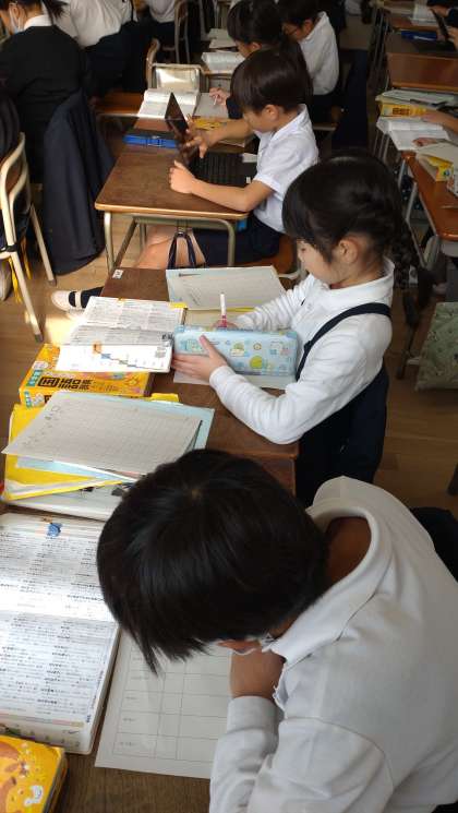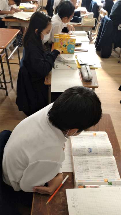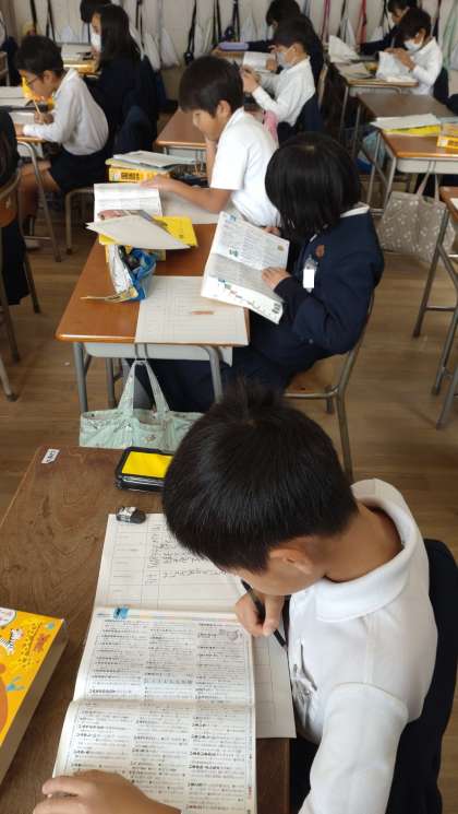 3年生が国語辞典を活用して、意味調べに取り組んでいます。子どもたちはとても集中しています。