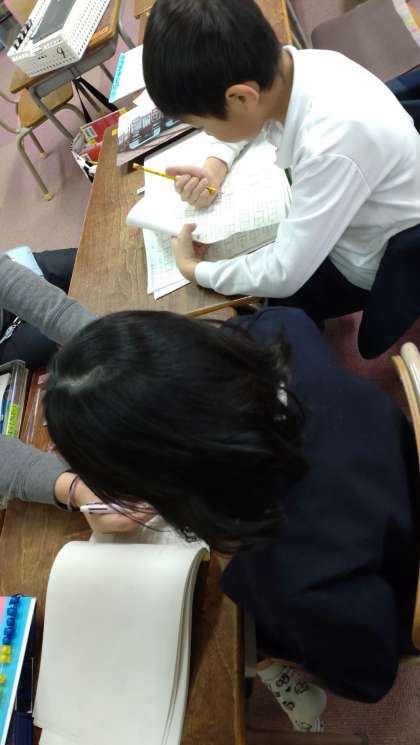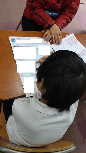 なかよし学級で、1年生と3年生が算数や社会の学習に取り組んでいます。