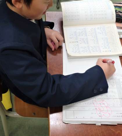 なかよし学級で、漢字の学習に取り組んでいます。これまで習った漢字を丁寧に復習しています。
