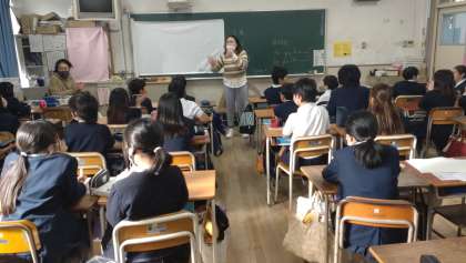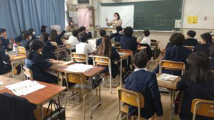 新しいC-NETの先生と英語の言語活動に取り組んでいます。5・6年生の外国語科では、「聞くこと」と「話すこと」に加えて「読むこと」「書くこと」の活動を想定した目標になっています。